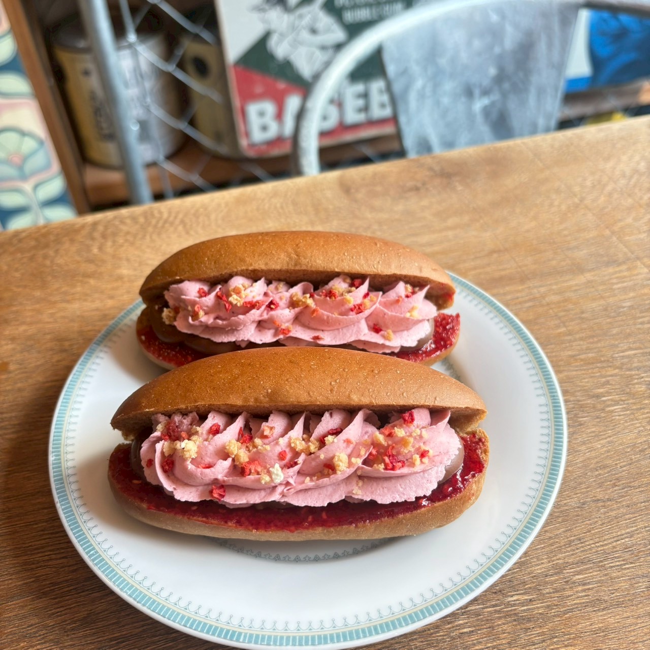 エスプレッソがほのかに香るミルクチョコのガナッシュと甘酸っぱいラズベリーホイップを合わせました!今の季節にぴったり!リッチな味わいの贅沢コッペです♪